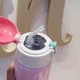 Features a secure lid with a push button for quick and safe opening, along with a transparent straw designed for kids to drink easily without spills.