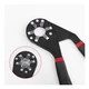 The wrench relies on high-strength movable metal teeth that work together to distribute pressure evenly around the fastener.