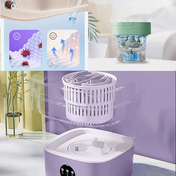 The portable washing machine features a compact and lightweight design, making it ideal for places with limited space such as small apartments, dormitories, and college dorms.