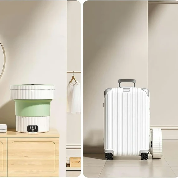 The portable washing machine features a small and lightweight design, making it perfect for limited spaces like small apartments, trips, and dorms. You can easily carry it and store it when not in use.