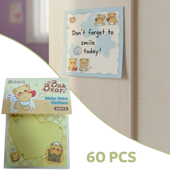 Bak Bear sticky notes feature adorable bear-themed illustrations in soft pastel colors that add a charming touch to daily organization; they provide just the right space for quick reminders and notes